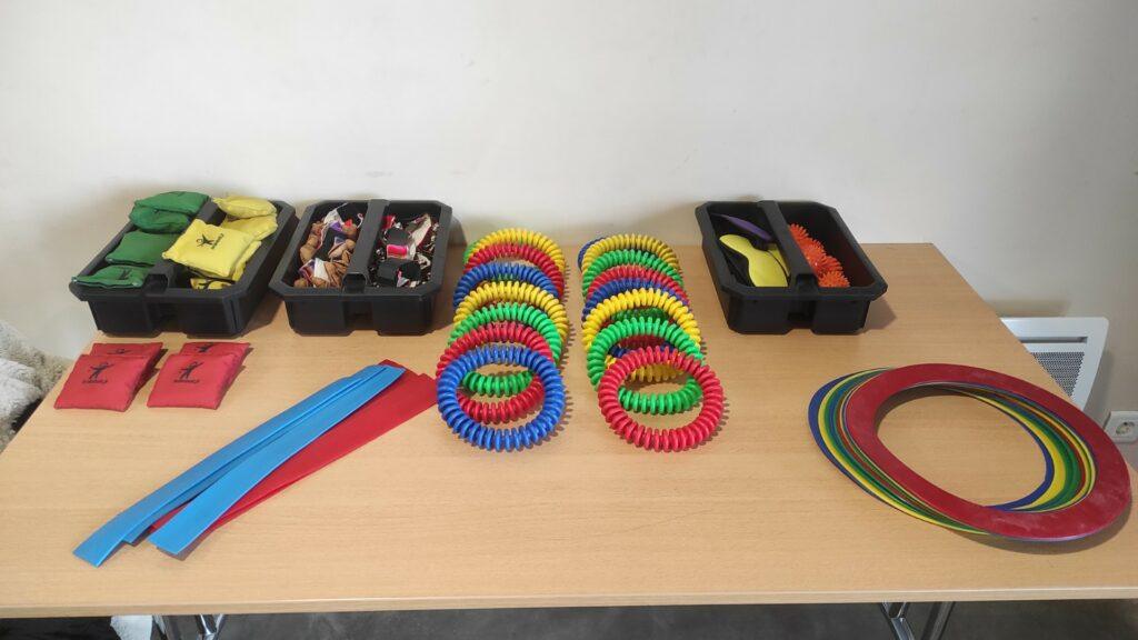 🔸 Faire circuler divers objets dans l’espace (balles, anneaux, sacs) avec fluidité et précision.